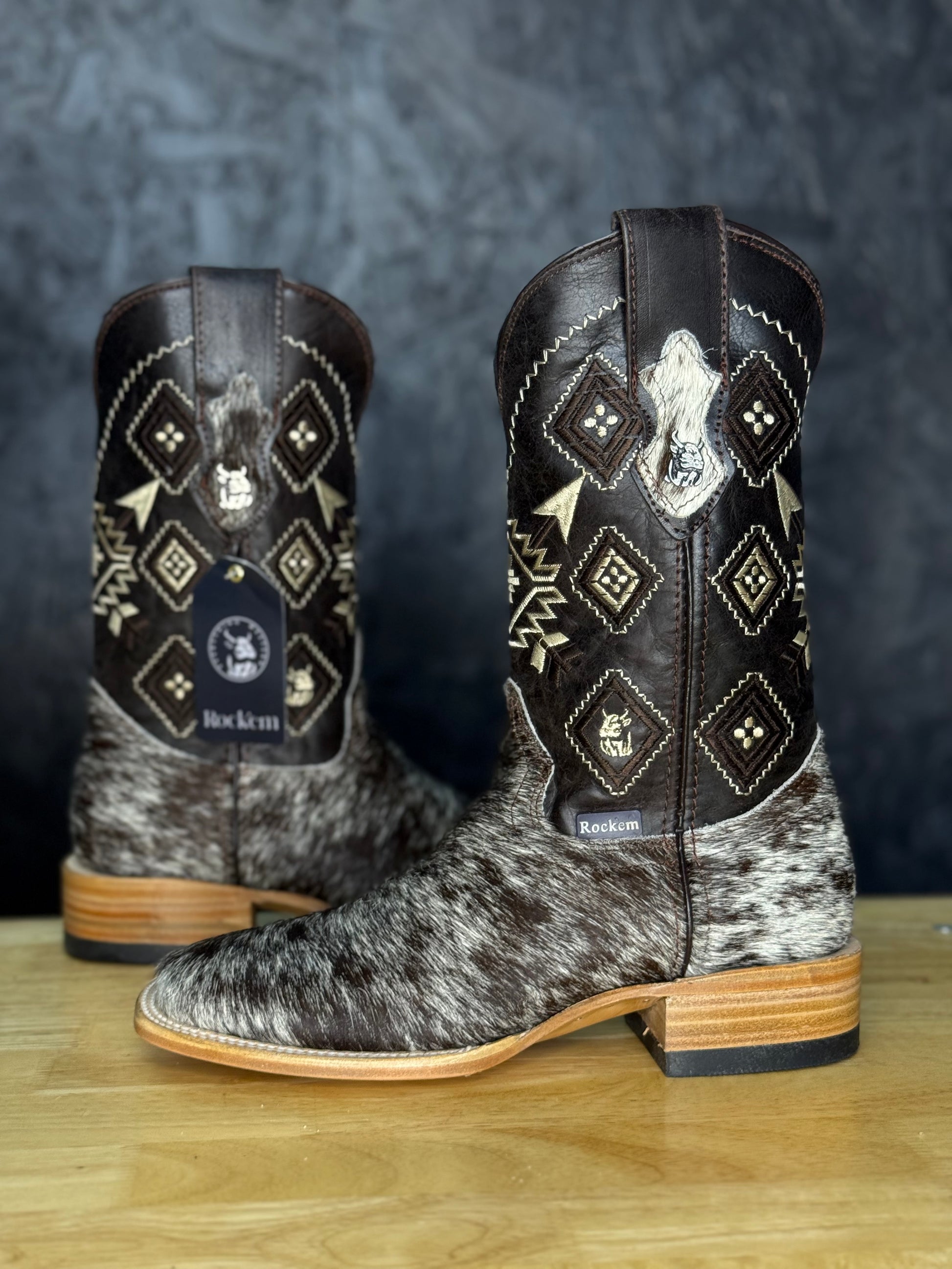 Crafted with precision and built for presence, the Men’s Cowhide from Rock’em combines rugged character with refined craftsmanship. Handcrafted in León, Guanajuato, this boot features a genuine cowhide leather vamp with natural fur, paired with a smooth leather shaft that adds structure and polish.