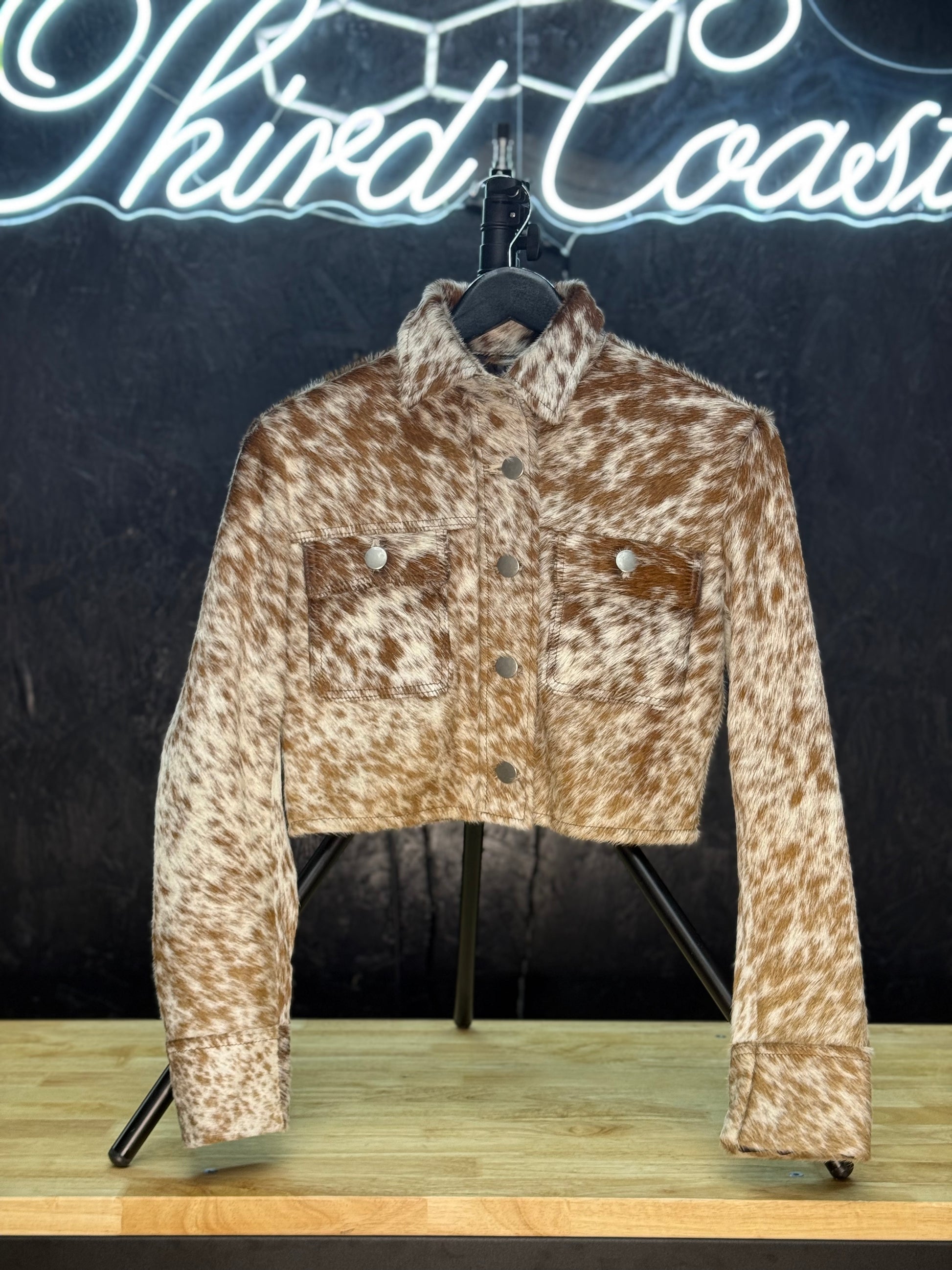 The Third Coast Women’s Jacket is a bold, feminine take on our signature cowhide outerwear. Each piece is 100% unique, made from natural cowhide with its own distinct pattern and texture.