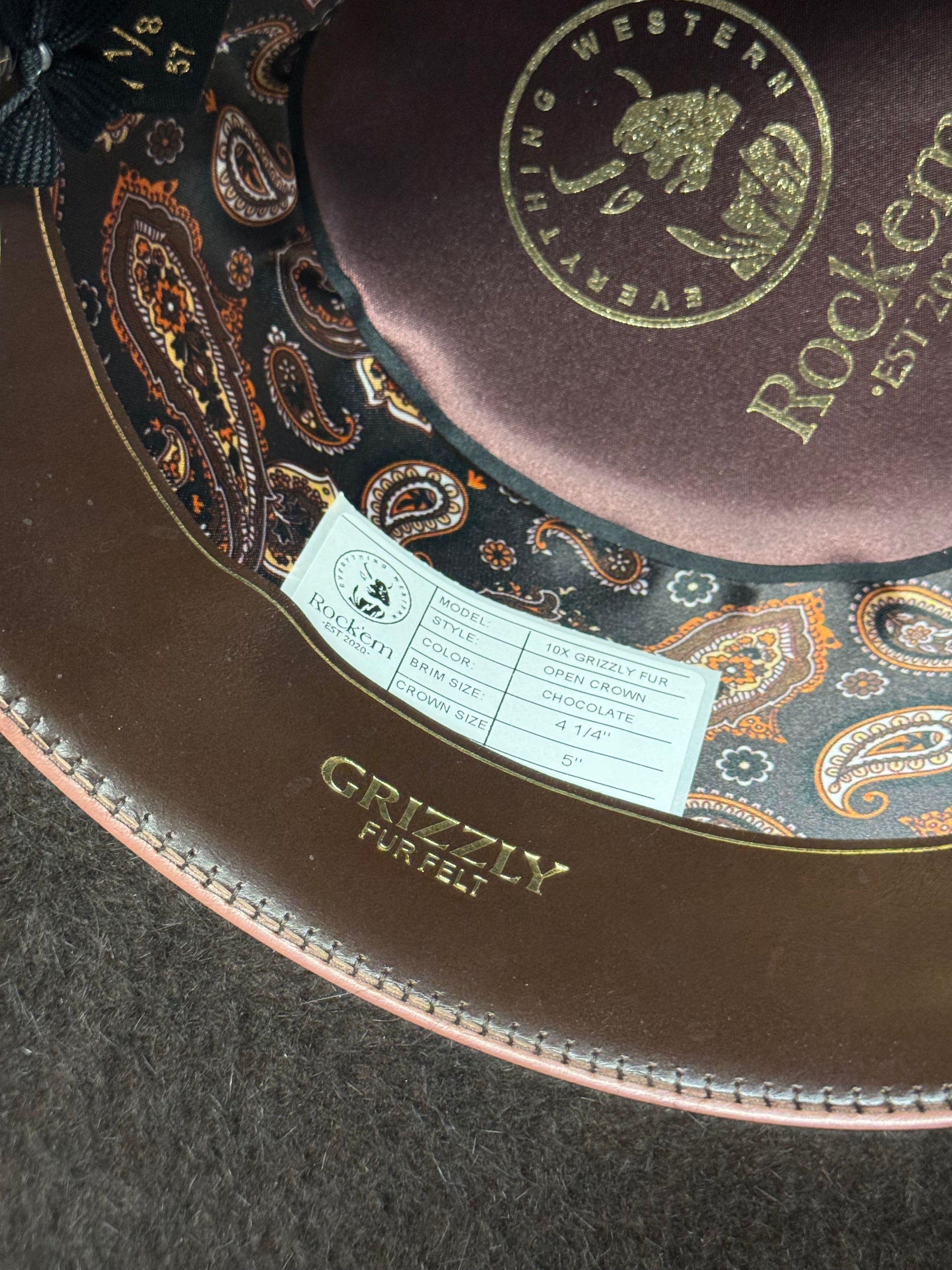 The Rock’em 10X Grizzly Felt Hat is crafted from pure grizzly fur, giving it a bold texture and rich finish that instantly sets it apart. With a naturally rugged feel and a smooth sheen, this hat is a true statement piece — built for those who want something beyond the ordinary.