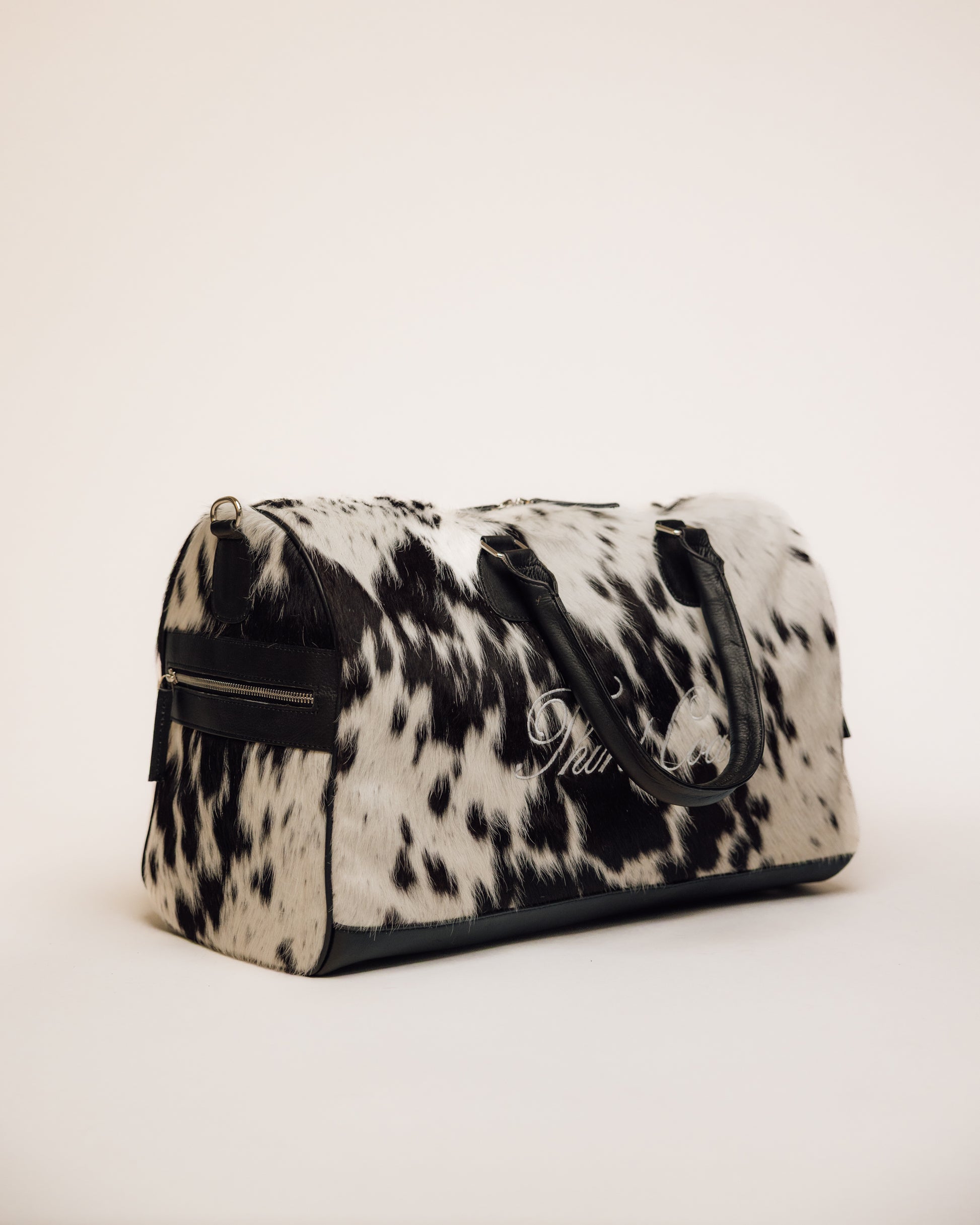 Turn heads wherever you go with the Third Coast Duffle in the stunning Black and White hue — Meticulously crafted from genuine cowhide fur, this one-of-a-kind duffle blends rich texture with bold design to elevate your everyday carry.