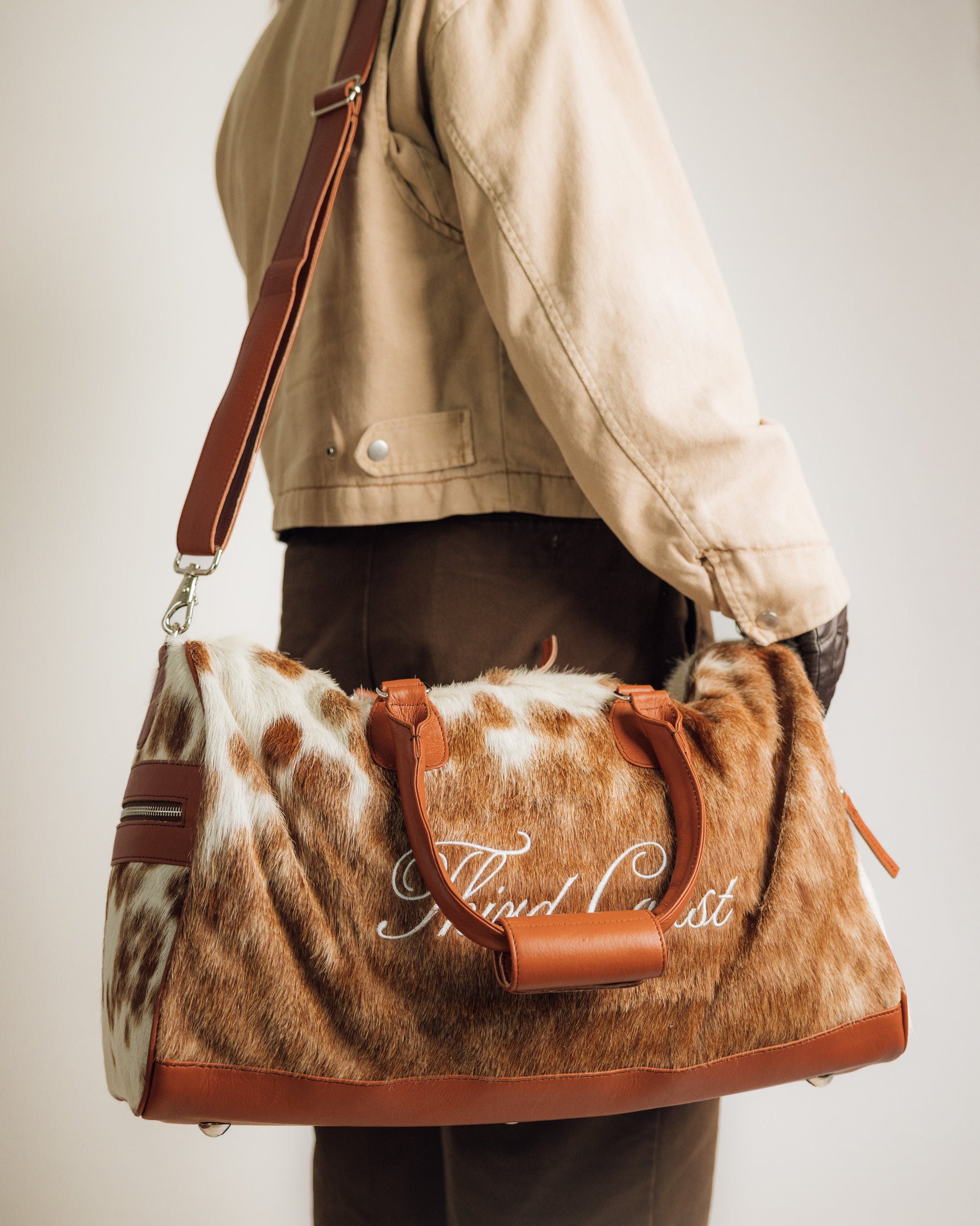 Turn heads wherever you go with the Third Coast Duffle in the stunning Red Angus hue — a warm, tanned shade that captures the essence of sunset vibes with timeless sophistication. Meticulously crafted from genuine cowhide fur, this one-of-a-kind duffle blends rich texture with bold design to elevate your everyday carry.