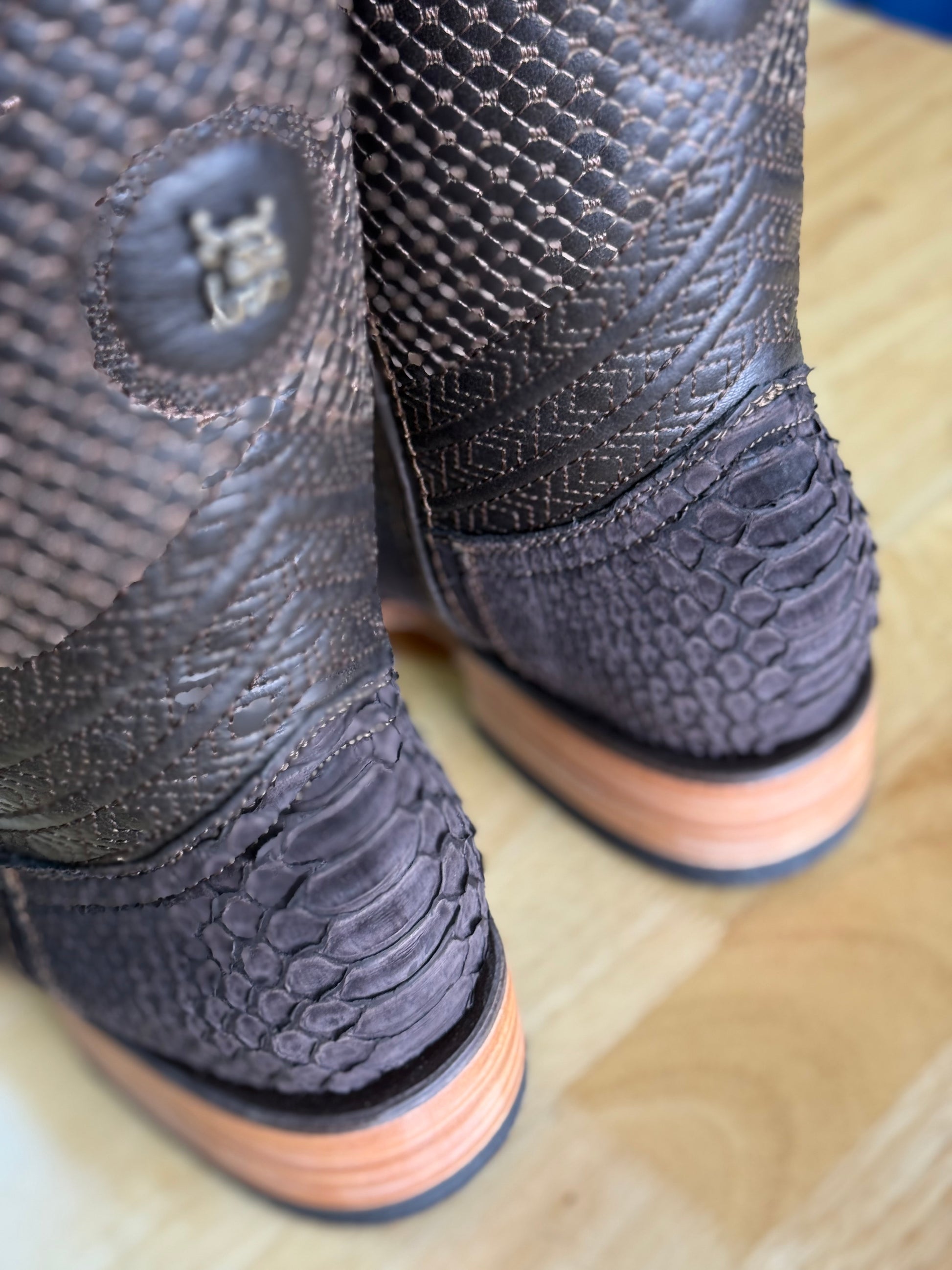 Introducing the Exotic Python Boot . A masterwork of craftsmanship and untamed luxury, handcrafted in León, Guanajuato, from genuine Python leather. Known for its sleek scale patterns, supple texture, and subtle sheen, python belly is one of the most elite materials in exotic footwear — rare, powerful, and effortlessly refined.