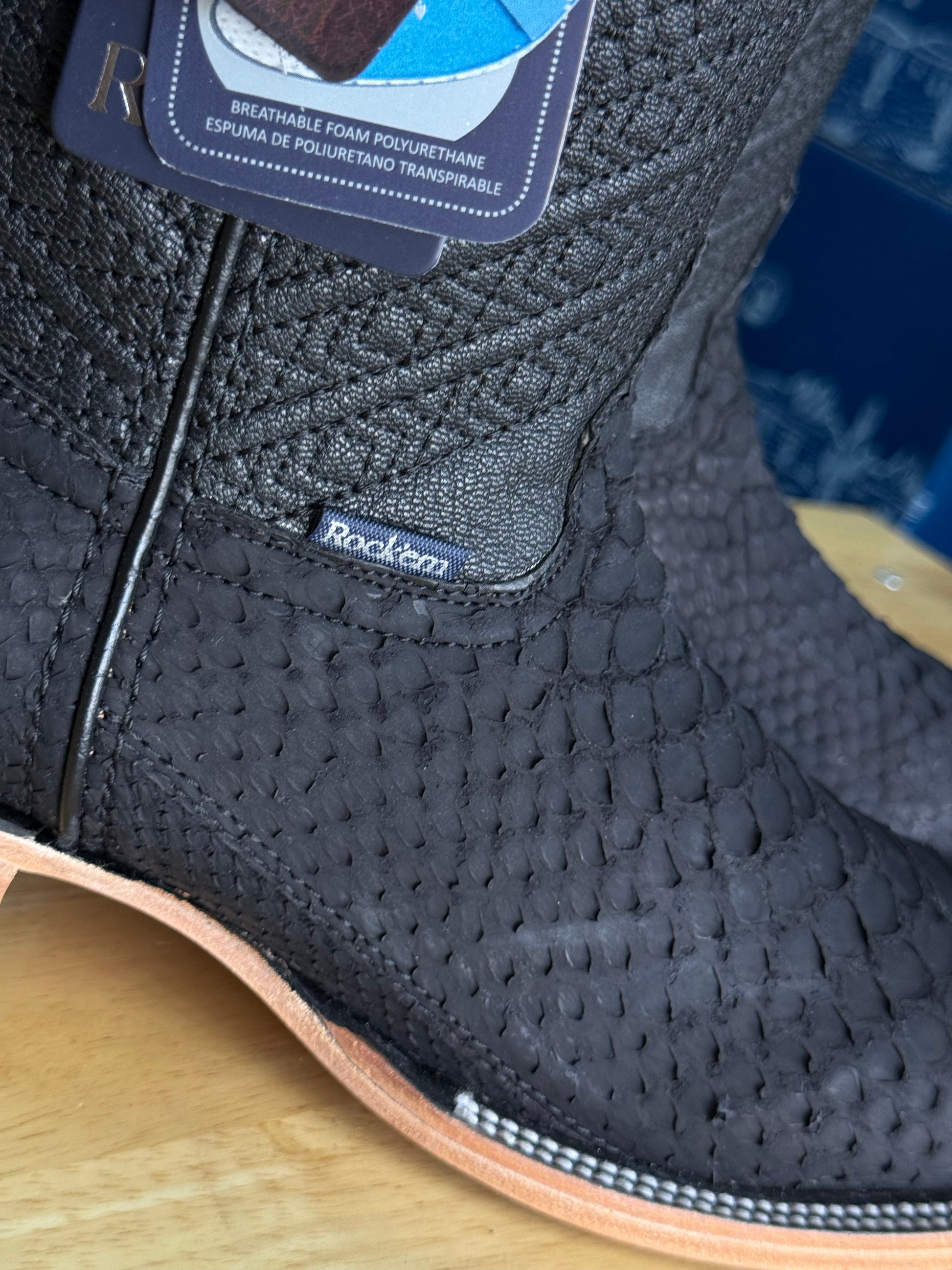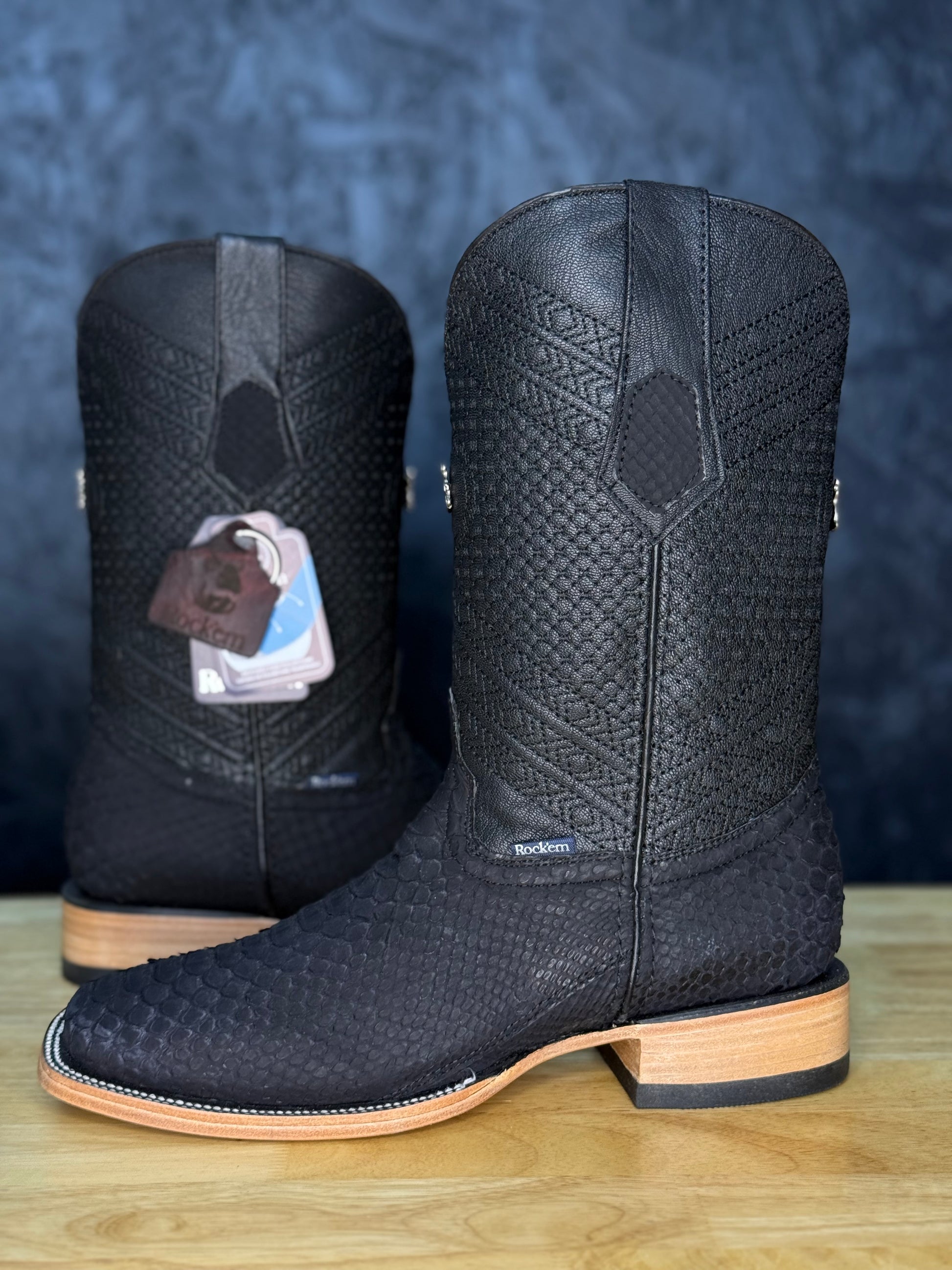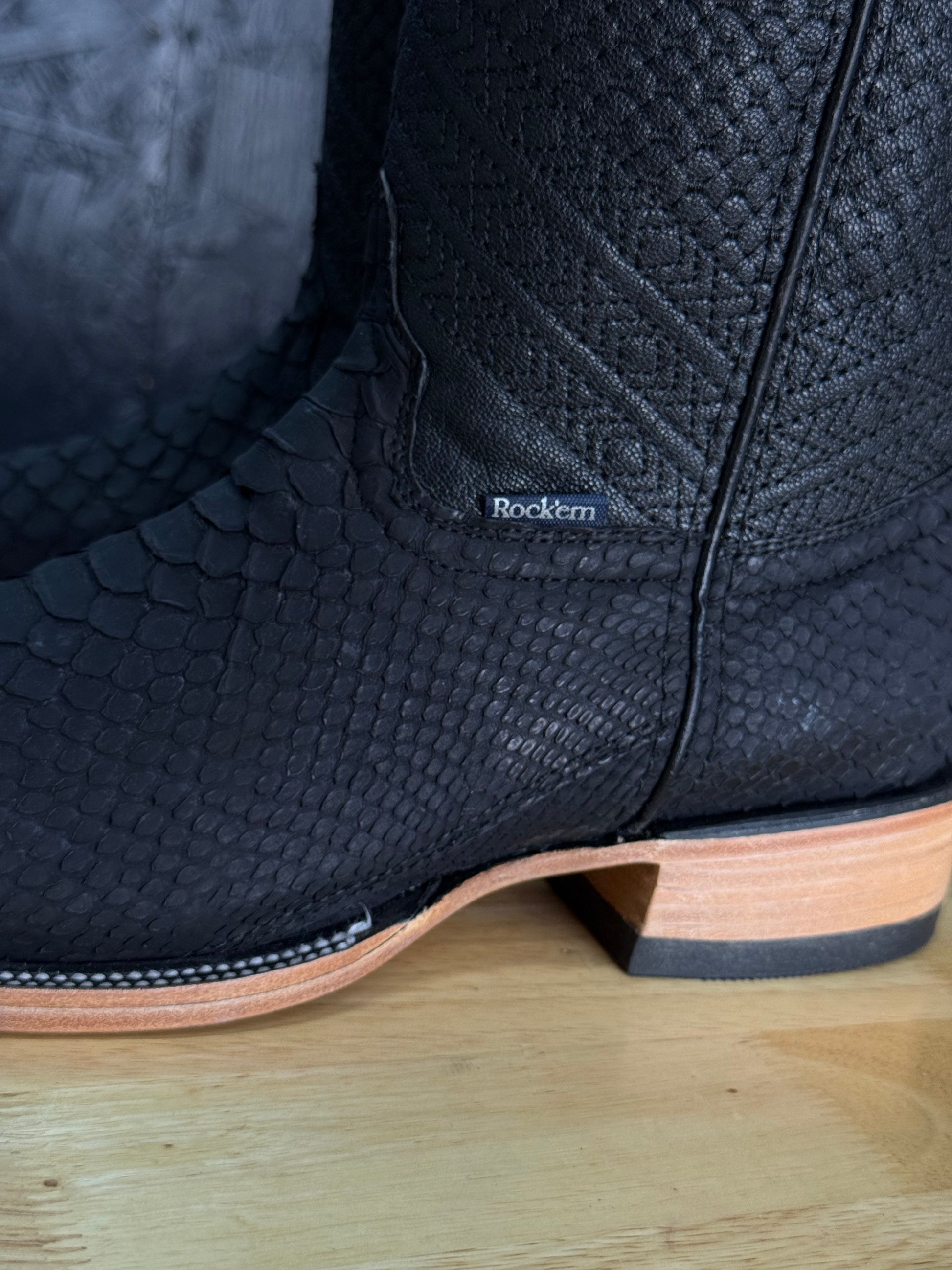 Featuring a naturally unique pattern with a combination of black, white, and grey marbled together to create a beautiful boot. Cut from the smoothest section of the python for a clean, elegant flow of pattern and tone. The exotic skin is expertly paired with a sharp square toe and a 1.5” stacked leather heel — blending classic Western spirit with modern, upscale energy.