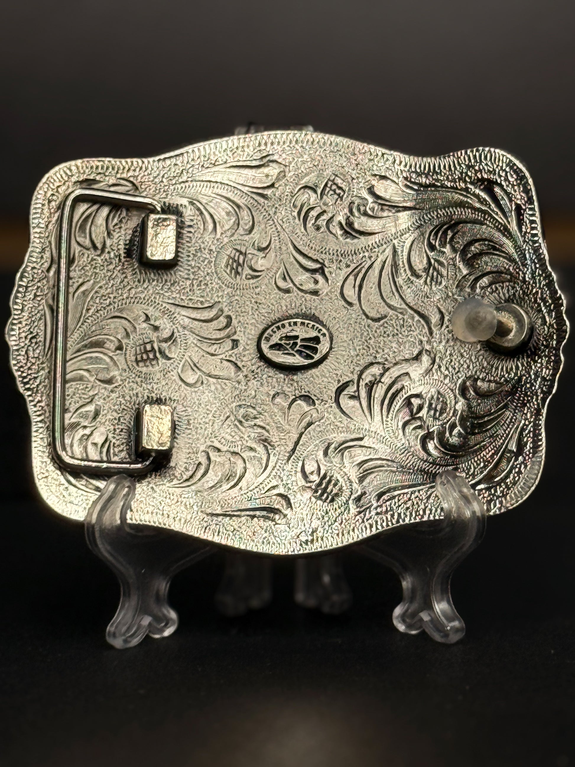 Capture the spirit of rodeo with this striking belt buckle featuring a bold bull rider centerpiece and the word "RODEO" prominently displayed. Crafted with intricate silver detailing and a polished finish, this buckle embodies the grit, skill, and tradition of the rodeo arena.