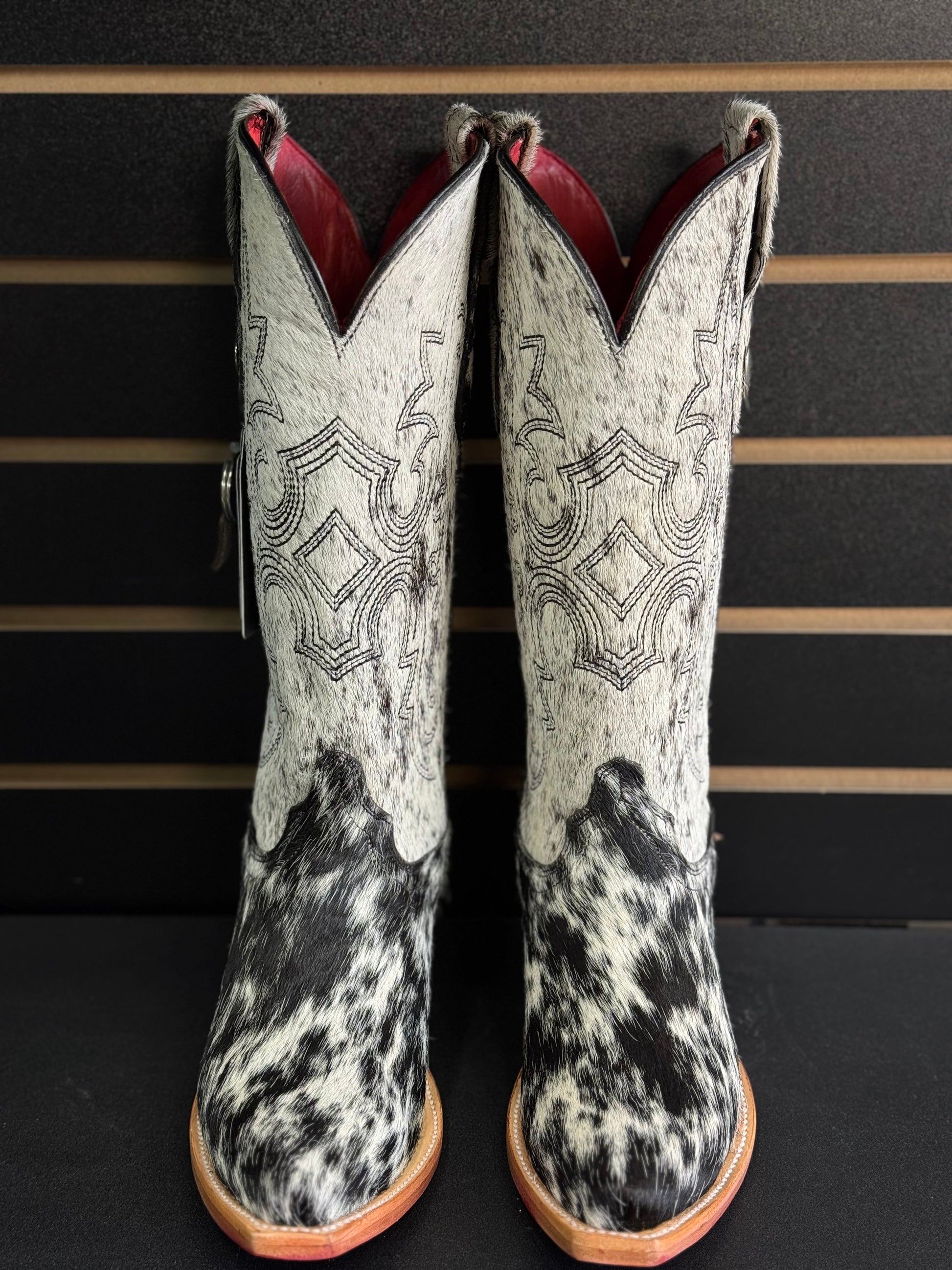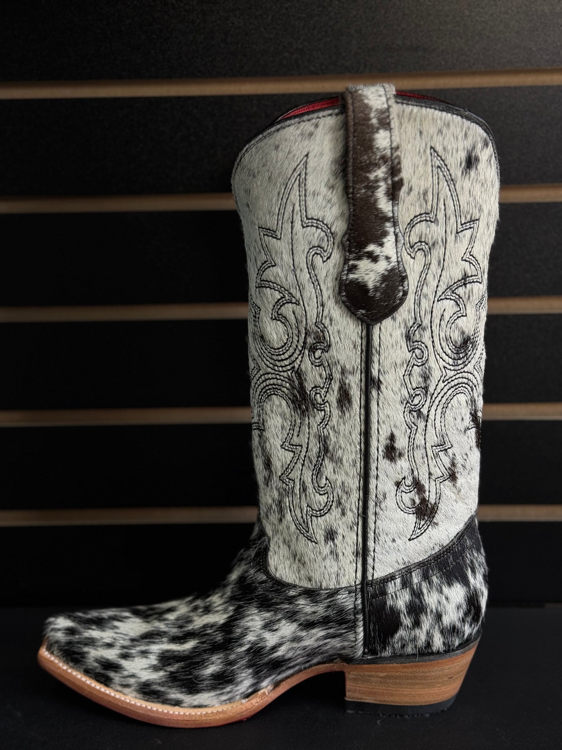 These Women's Snip Toe Cowhide Boots in the exclusive Red Bottom Edition tell a story all their own. Each pair is carefully crafted from handpicked cowhide, showcasing a unique, one-of-a-kind texture and natural beauty—no two pairs are ever the same. Expertly handcrafted by skilled artisans, these boots blend authentic Western craftsmanship with a modern, stylish edge, redefining Texas heritage for today’s confident, fashion-forward women.
